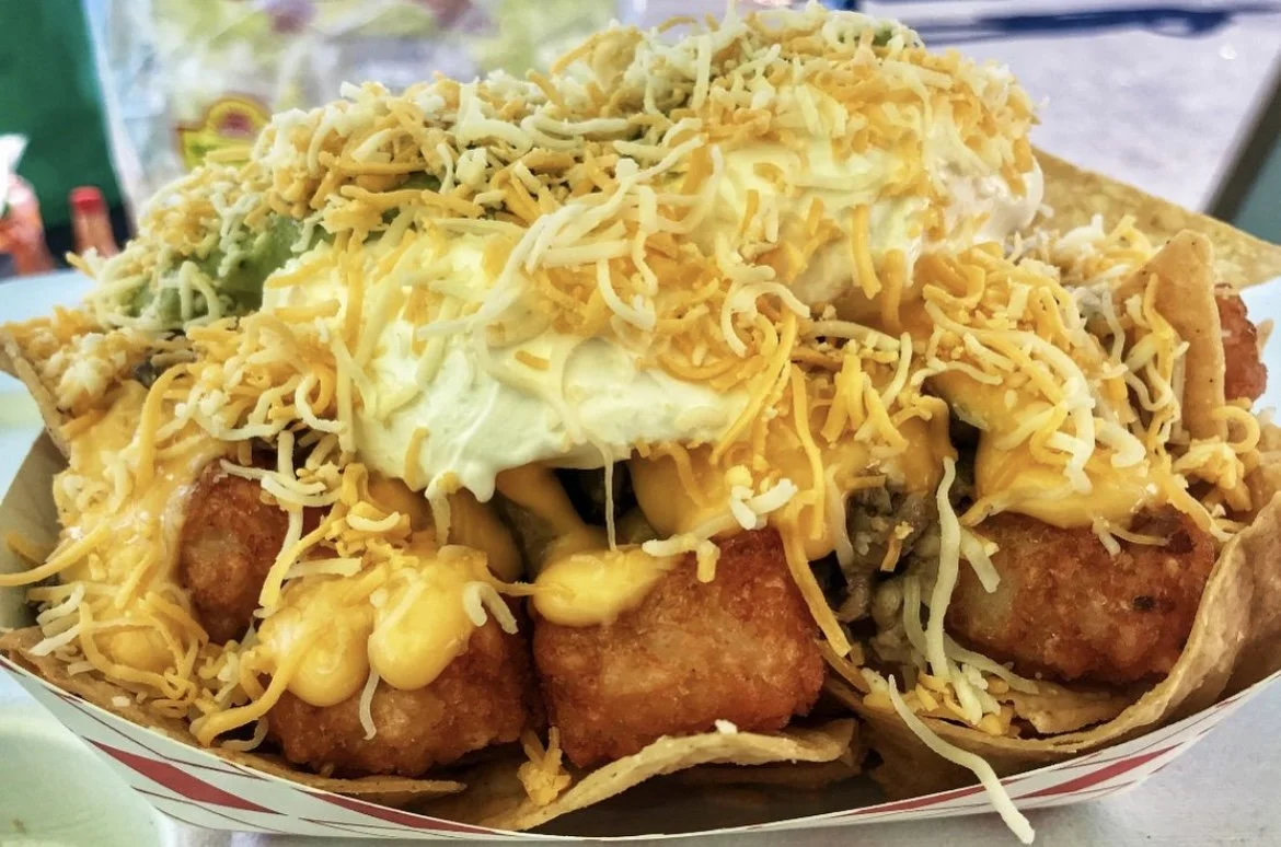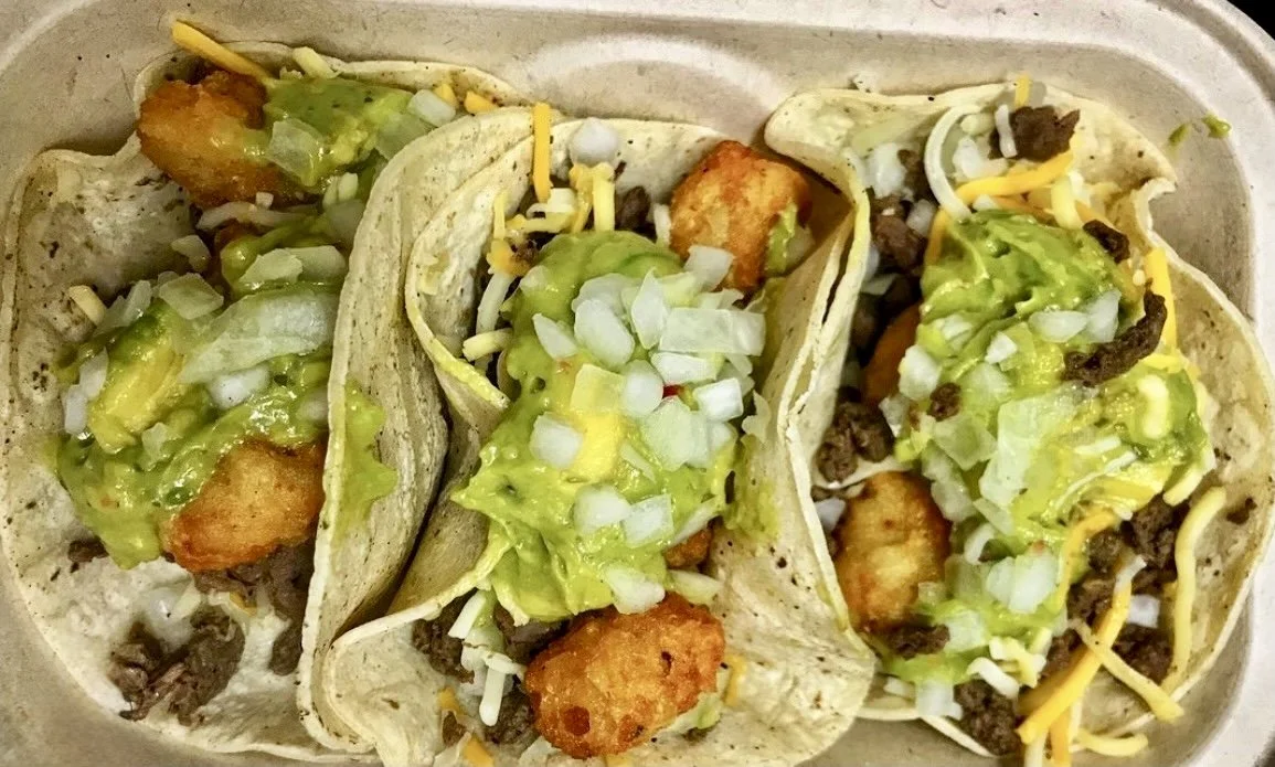 Carne asada -OR- Chicken tacos topped with guacamole, onion, jalapeños & cilantro. Throw in tater tots and enjoy our delicious TATER-TACOS!