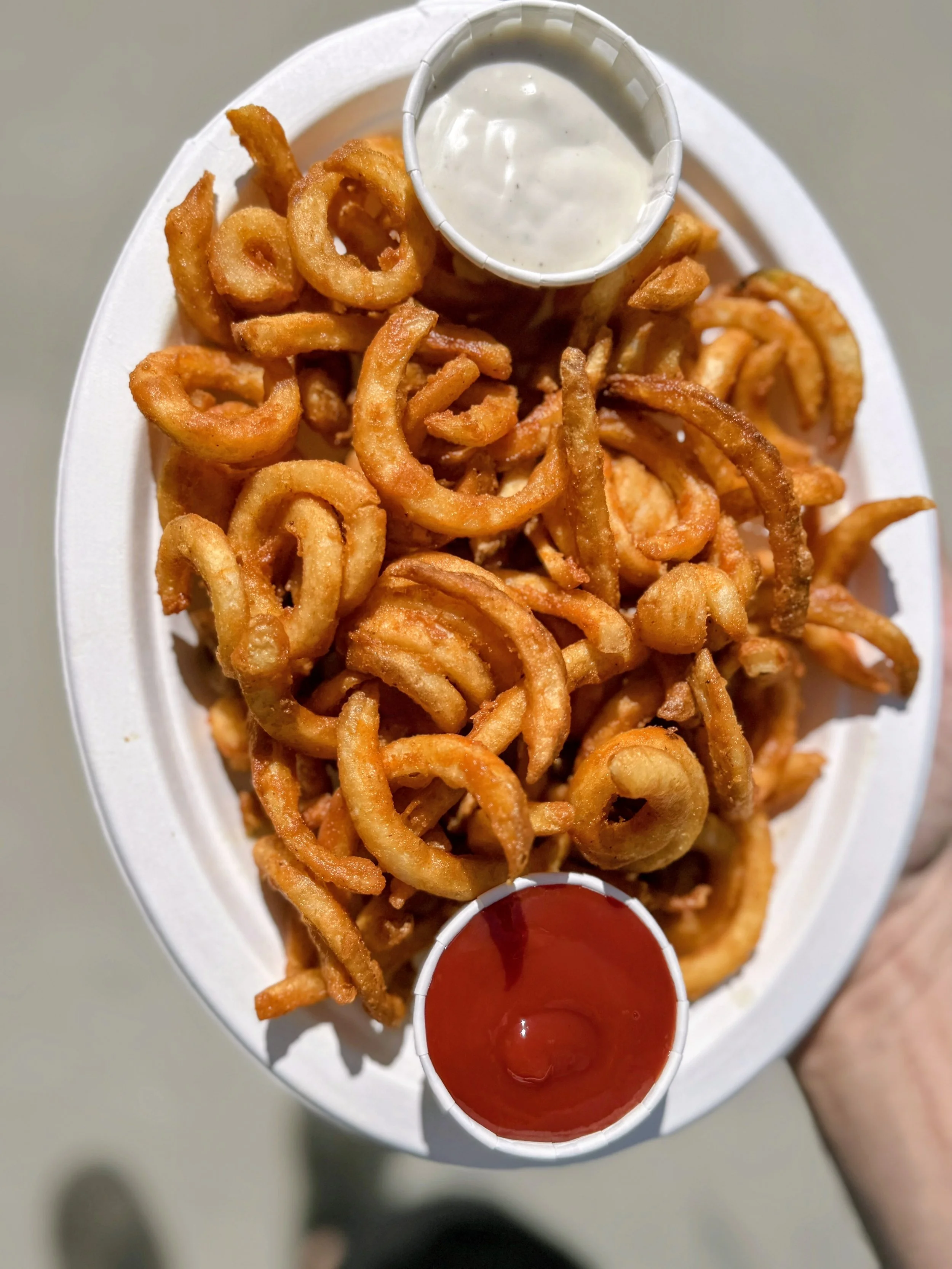 Our mouthwatering crispy Tater tots & seasoned curly fries are always fresh fried! Dunk ‘em in ketchup, or smother them in chili and cheese, and don’t forget the bacon & sour cream!